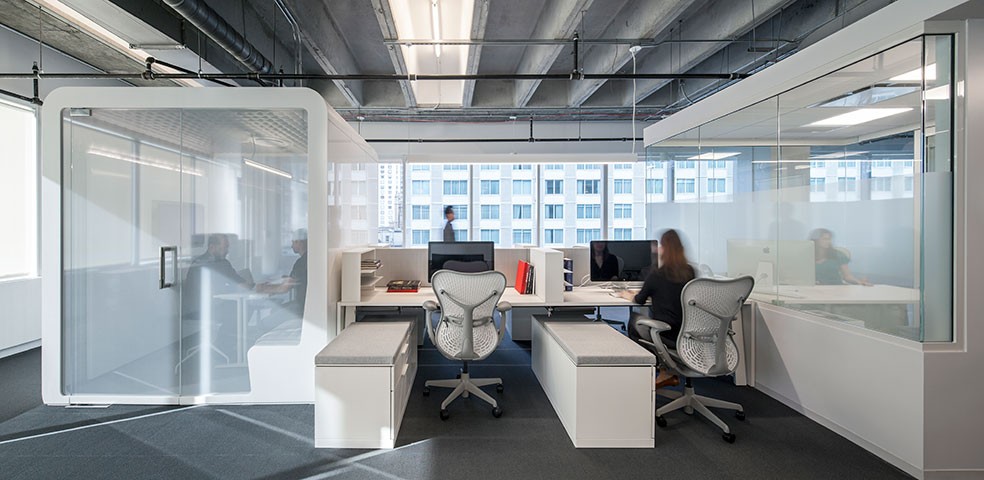 Project specific challenges were driven by both the three-dimensionality of the renovation, as well as by the existing structure. Working with exposed conduit on waffle slab structural decks, Egg electricians had to consider every move made, to ensure the look and feel of the space would not be disrupted. Tight clearances for electric closets required adept maneuvering in and out of the core. EGG employed innovative planning and installation methods to tackle these issues, while maintaining the client’s vision for the space, and delivering the job on schedule.
